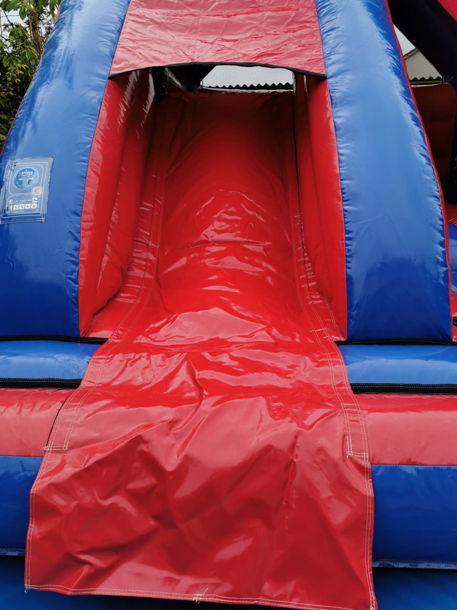 Make your next celebration one to remember with our Red & Blue Bouncy Castle with Slide, available for hire from GFC Leisure.