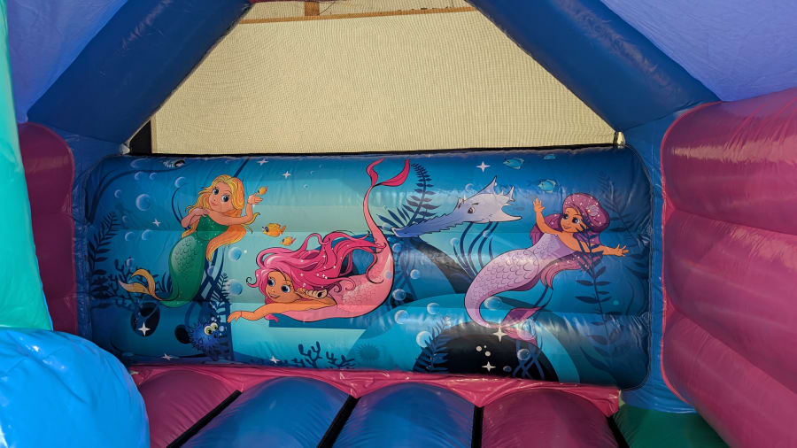🧜‍♀️ Mermaid-Themed Design: Decorated with beautiful mermaid and ocean artwork, this bouncy castle is ideal for any mermaid or under-the-sea themed celebration.