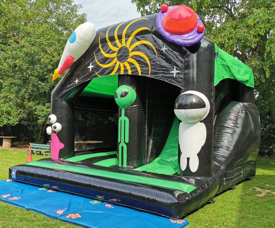 Beautiful Extra Large Alien/Space Themed Bouncy Castle and Slide Combo with 3D Artwork
