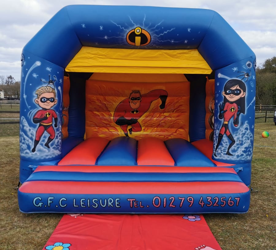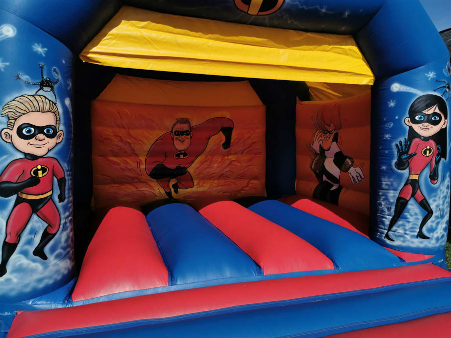 Get ready for action-packed fun with the Incredibles Themed Bouncy Castle! Featuring the iconic characters from Disney's The Incredibles, this vibrant bouncy castle is the perfect way to add excitement to your party or event. Ideal for children under 12, it’s sure to provide hours of high-energy fun for young superheroes!