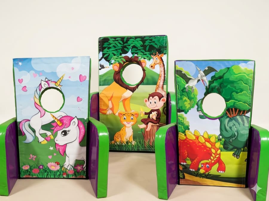 Add some extra fun and laughter to your event with our Soft Play Peekaboo Board! This playful and interactive board comes in three exciting designsJungle, Dinosaur, and Unicorn—and is double-sided, so you can choose two designs to match your party theme. Perfect as an add-on to any bouncy castle or soft play set, this peekaboo board is sure to keep your little guests entertained as they make silly faces and peek through the holes for great photo opportunities!